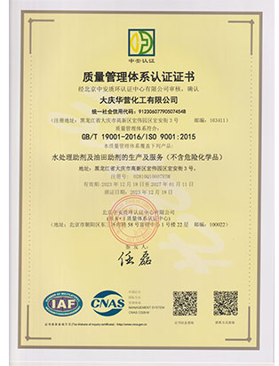 大慶華營化工有限公司成立于2006年7月10日,注冊資金3300萬元,公司類型為有限責(zé)任公司。位于大慶高新技術(shù)產(chǎn)業(yè)開發(fā)區(qū)宏偉園區(qū),是一家集油田助劑產(chǎn)品的研發(fā)、生產(chǎn)、銷售和技術(shù)服務(wù)為一體的現(xiàn)代化高新技術(shù)企業(yè)。公司注重科技創(chuàng)新,公司擁有18項(xiàng)自主知識產(chǎn)權(quán)。企業(yè)承擔(dān)過國家火炬計(jì)劃重點(diǎn)項(xiàng)目、國家科技型中小企業(yè)創(chuàng)新項(xiàng)目等,2011年被科技部火炬高新技術(shù)產(chǎn)業(yè)開發(fā)中心評為國家火炬計(jì)劃重點(diǎn)高新技術(shù)企業(yè)。公司十余種產(chǎn)品獲得中國石油天然氣集團(tuán)公司產(chǎn)品質(zhì)量認(rèn)可證書,其中粘穩(wěn)型驅(qū)油劑獲國家火炬計(jì)劃重點(diǎn)項(xiàng)目證書。公司憑借多年對大慶油田及周邊油田地質(zhì)情況的研究,可針對各油田地層特點(diǎn)調(diào)整產(chǎn)品的配方,更好地發(fā)揮各類油田助劑的性能。